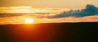 Seven years later, in 2004, I went back up to Eagle Summit again for the solstice. Conditions were very different. Smoke from a forest fire obscured the view of the sun, but resulted in a dramatic photo anyway. You can see pictures (taken with a better camera) from that more recent trip at this link: Summer Solstice Scenes, and others |