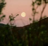 Here in Anchorage Alaska, it just barely gets dark as the sun dips below the horizon in the middle of the night during the summer. But we wanted to see the real midnight sun. So the day before solstice this year, we packed up our van and drove about 500 miles to a spot where, thanks to its higher latitude and altitude, you can see the real thing. Eagle Summit reaches the highest elevation on the Steese Highway, a mostly gravel road northeast of Fairbanks. In that magic place, on June 21st, we saw the sun at midnight as it "touched" the horizon but did not set in the northern sky. To the south there was a nearly full moon, both orbs shining brightly in the dusky midnight sky. | |||