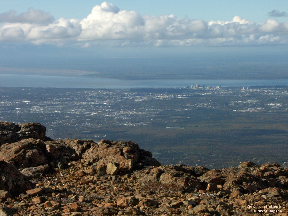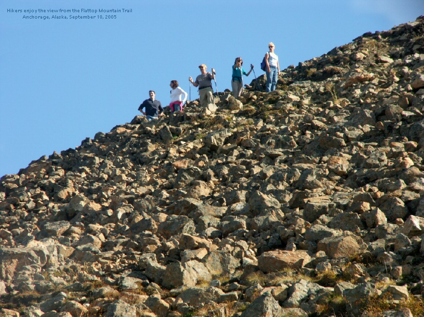 | 9/10/05 Our early Fall weather has been rainy and cloudy, but not terribly cold. Saturday was the first nice day in a long time, so I didn't want to miss the chance. Flattop was showing a bit of color, even though we haven't had any freezing temperatures. Other hikers were also drawn to our favorite local mountain to enjoy the autumn hues and the rare glimpse of the sun. More rain is predicted for the next few days, but we can hope for a clearing next weekend. |