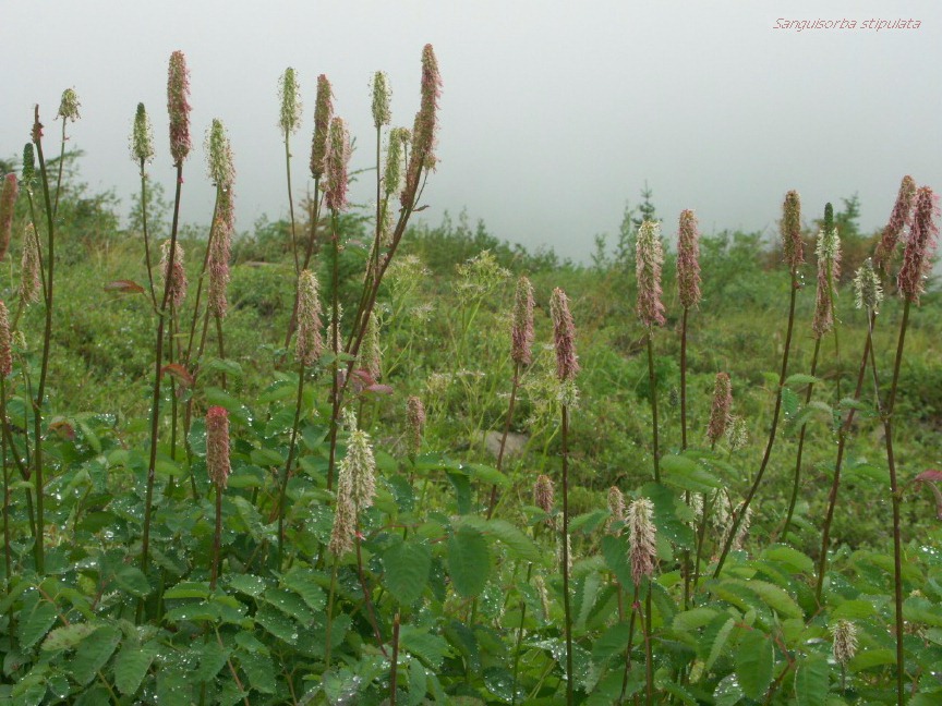 There have been clouds and rain for days now. A bit of sun was predicted for today, but it was as cloudy as previous days. It wasn't actually raining, however, so we climbed up Flattop in the fog. The trail was muddy from earlier rain, and vegetation was drenched. The trail wasn't too bad though, and there were a few other people up there, enjoying the --um, well-- lack of view. I guess you could say the view was at our feet, as flowers were everywhere. The lower left photo includes Sitka Burnet, Yellow Paintbrush, and monkshood. Click on it for a larger version. All the collage pix are "clickable". |