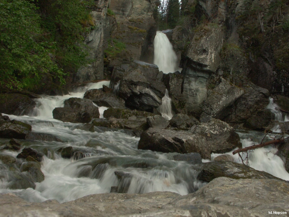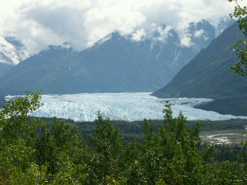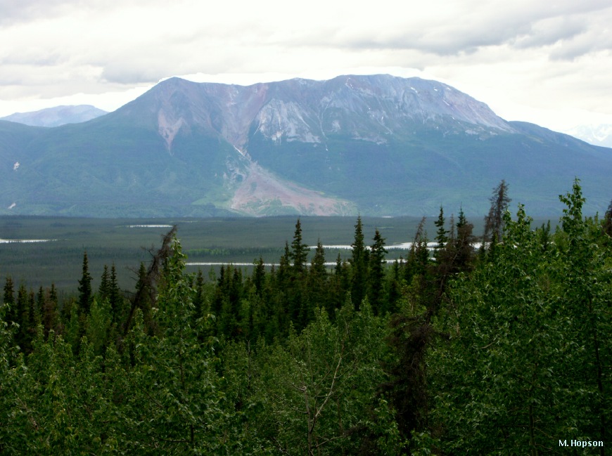On Friday, Anchorage was covered by a thick cloud of smoke from a forest fire on the Kenai Peninsula. My eyes and throat were stinging and I was having trouble breathing. So I decided to get outta' town. The Wrangell-St. Elias National Park is not far from Valdez, where my daughter lives, but in all the times I've driven past, I never took that left turn to see the Park. So this time I went exploring. It's a wilderness park, with gravel roads and few amenities. That night I camped inside the park, and Saturday I found the Crystalline Hills Trail. It's a little footpath that goes uphill through thick forest, past a dry waterfall of polished marble, alongside rock walls that look like ice. The forest floor was strewn with flowers. It was a very nice easy hike. The weather was cool, overcast, with intermittent sprinkles. By the time I got home on Sunday, the winds had shifted, and the air was clear. |