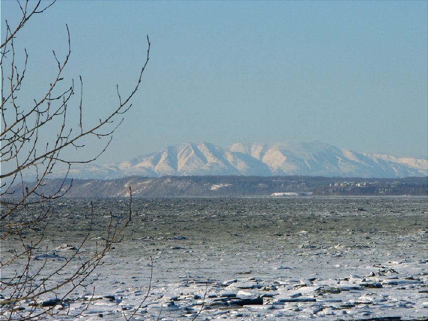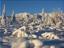 | 2/19/07 Although Bird Ridge is the first trail to open up in the spring, it is not spring yet. The trail is covered with ice and snow, but there has been no new snowfall recently, and the trail is hard packed, not terribly difficult to traverse, at least as far as the "meadow" where there are good views in three directions. All of the pix in the collage have full-screen versions if you click on them. |