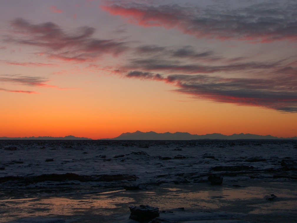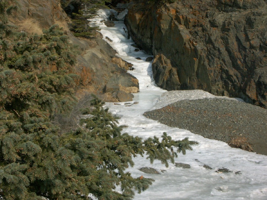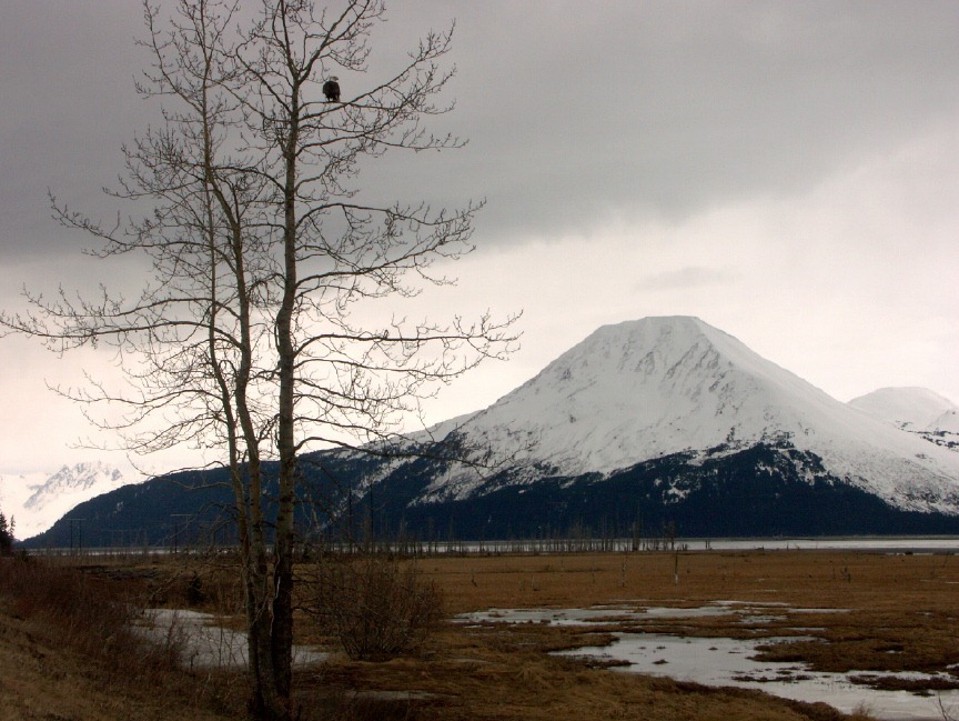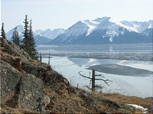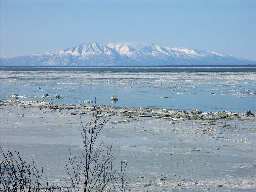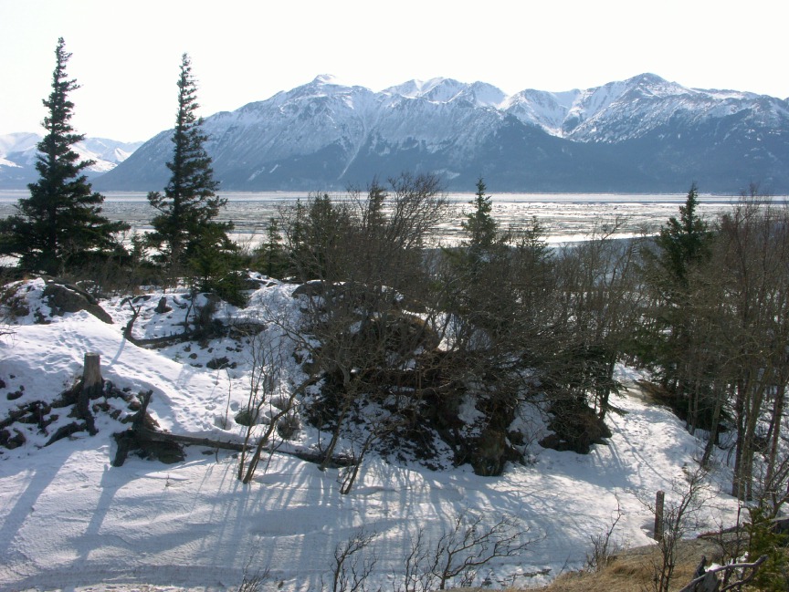 More March 2007 photos: A moose calf nibbles a neighbor's tree It's mother is nearby Cold ducks wait out the long winter Sunset over Turnagain Arm Mt. Susitna, across an icy inlet A dramatic icefall in Portage Valley Shelf fungus on a dead tree branch