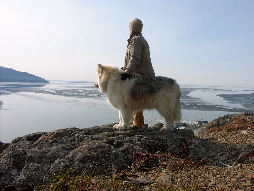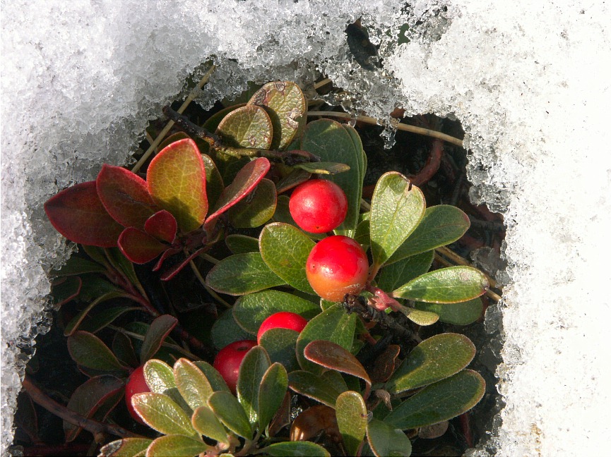 More McHugh Creek Park scenes: Another view of the inlet My dog and I looking over the cliff Kinickinick berry, under the snow No flowers yet... well, except for these A still frozen McHugh Creek