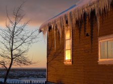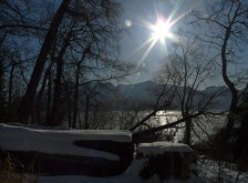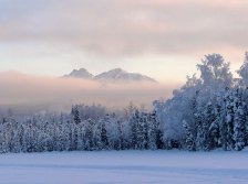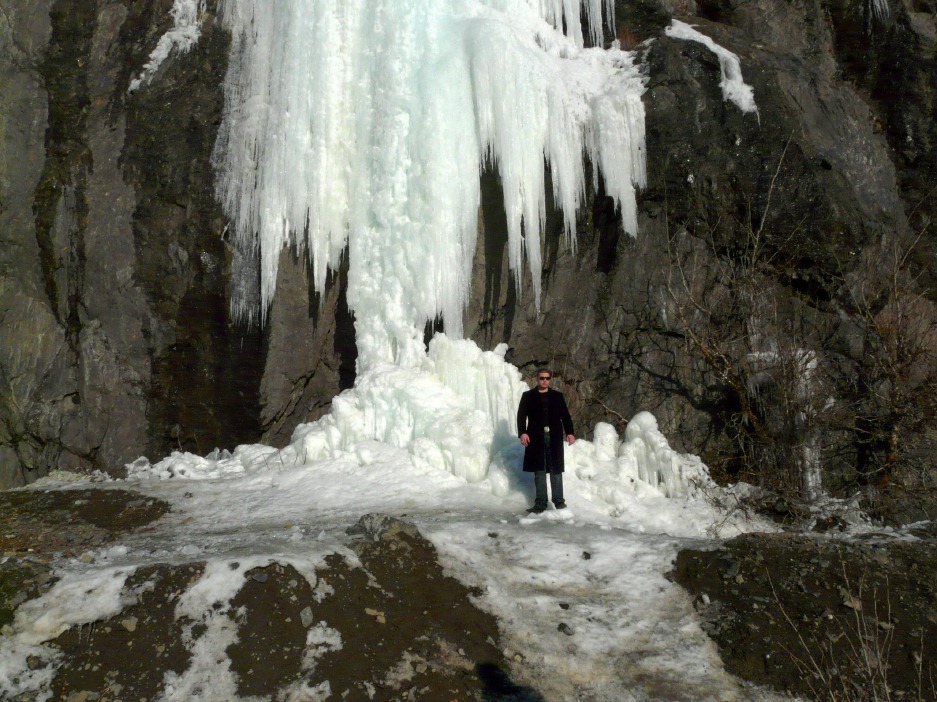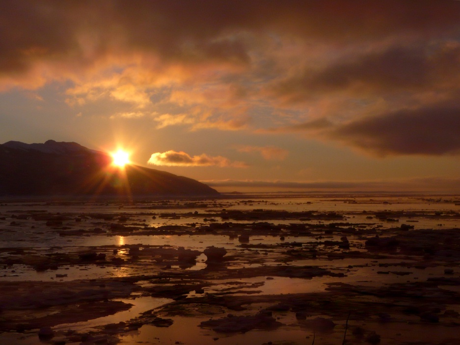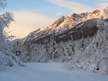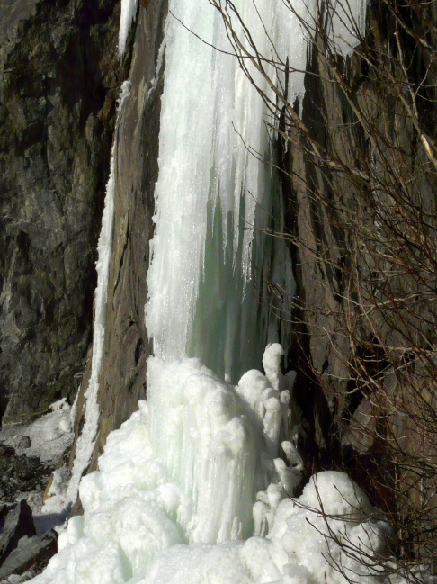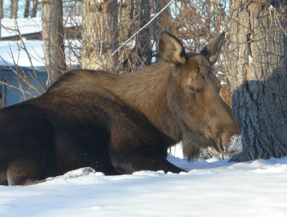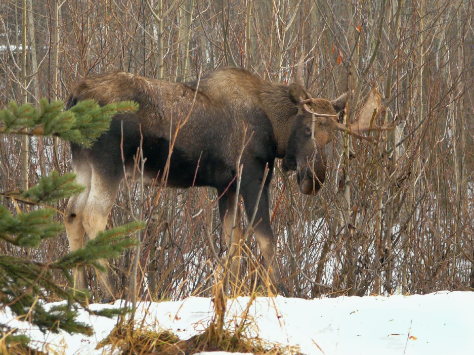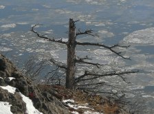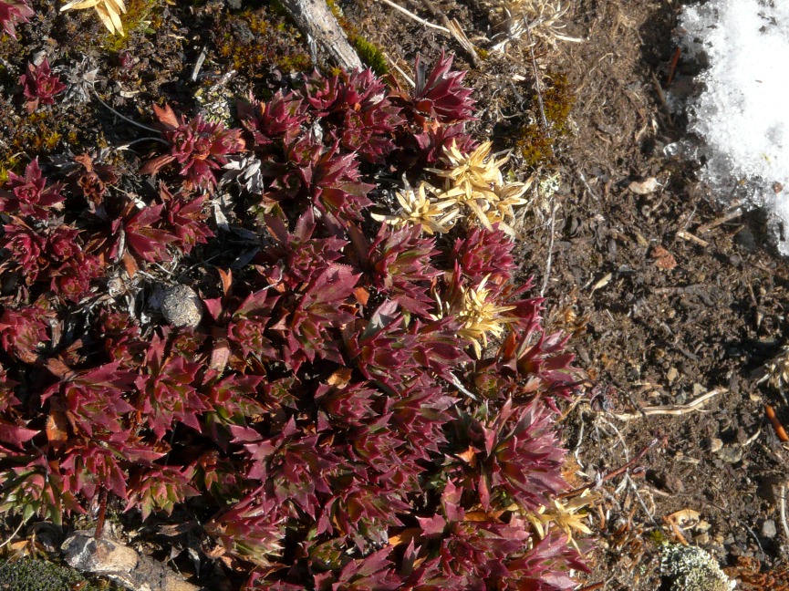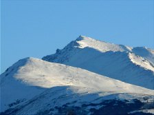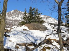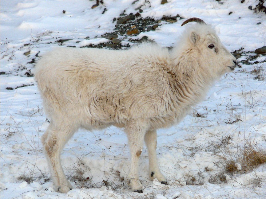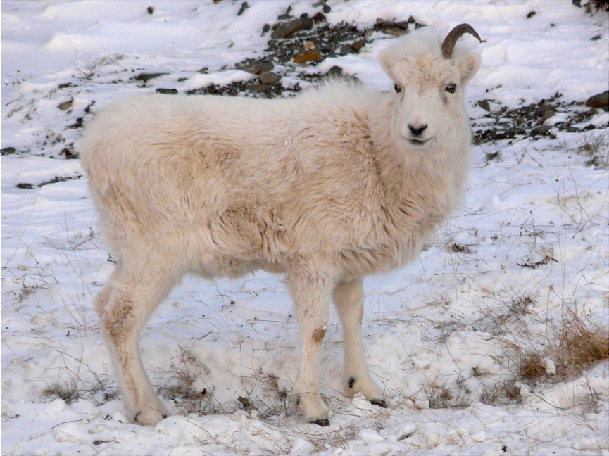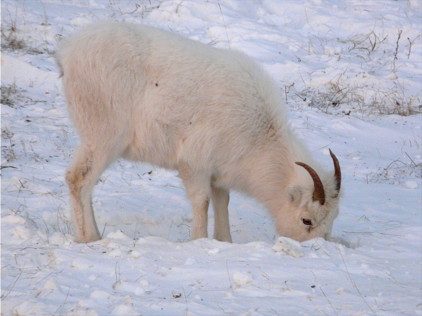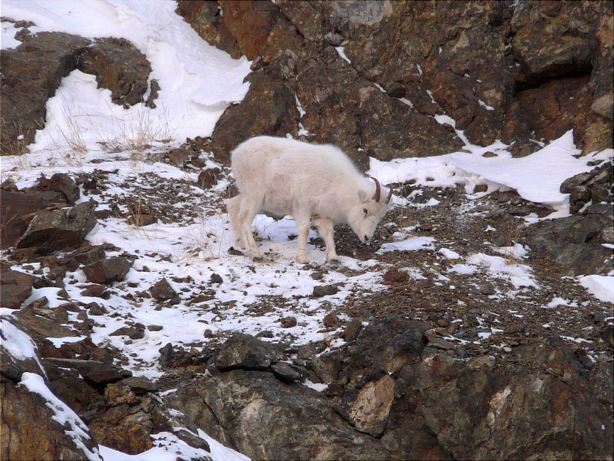 eating / up on a cliff / a one horned sheep / looking this way | ||