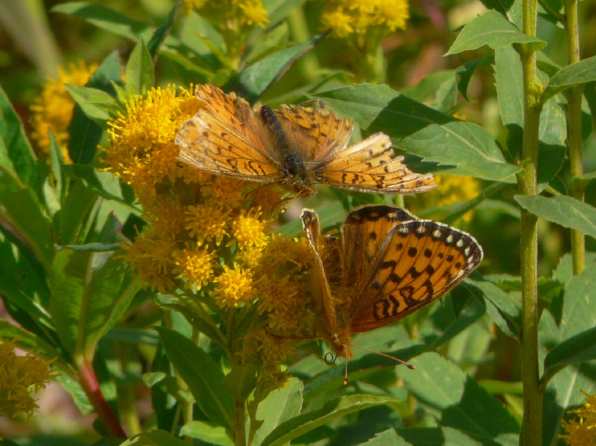 More scenes from Bird Ridge: A couple Arctic Fritillary (one very worn) on Elegant Goldenrod |