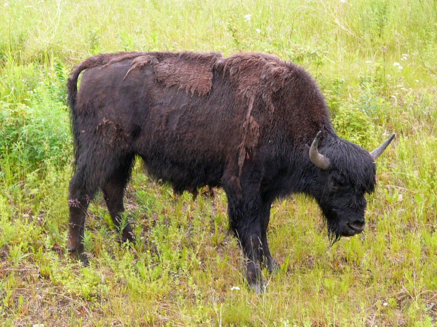 7/6 I'd have to call today perfect traveling weather. It rained all day, sometimes light, sometimes a downpour. Nothing better to do than sit in a nice comfy van and mosey on down the road. Even Jascha didn't want to go out. We got about 400 miles, to Fort St. John, BC, not far from Dawson Creek, mile 0 of the Alaska Highway. We saw bear, buffalo, deer, free range horses, a red fox with an arctic ground squirrel in its mouth, and lots of rodents and birds, in spite of the inclement conditions. Some of the animals looked pretty miserable though. Tonight I'm in a motel, mainly for the WiFi. It allows dogs, and the kitty is happier in the van. |