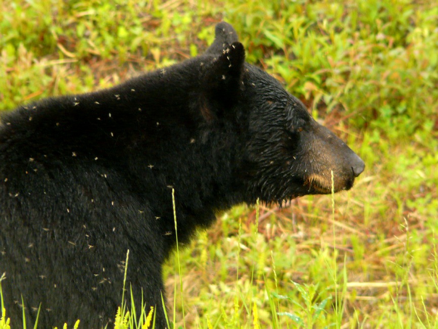 Soggy scenery and animals from British Columbia: One very damp and very buggy black bear |