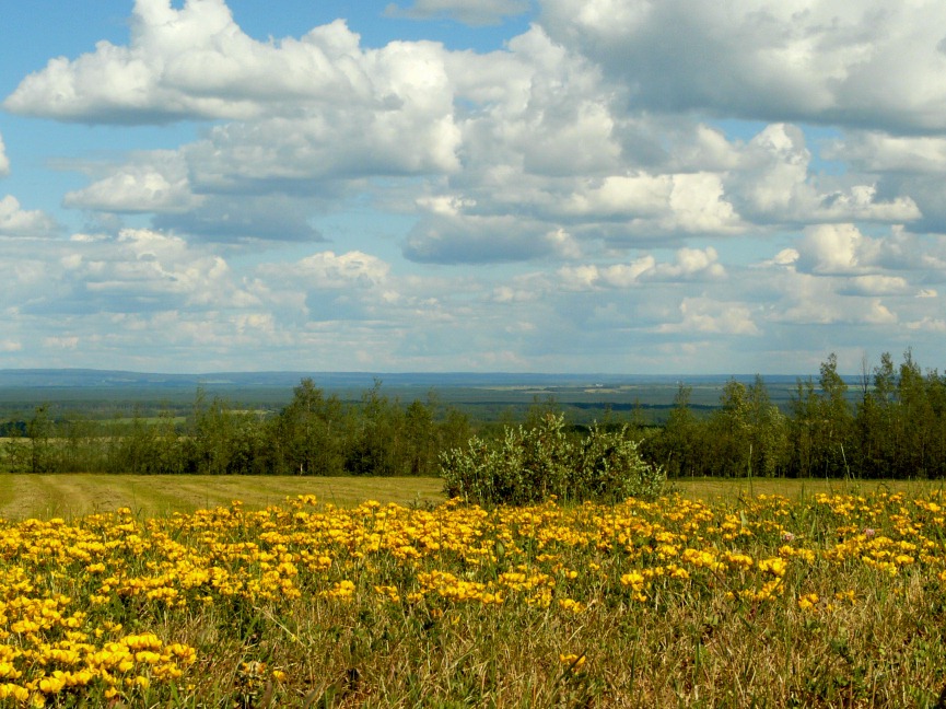Alberta prairie scenes: Prairie, with yellow flowers, near ValleyView |