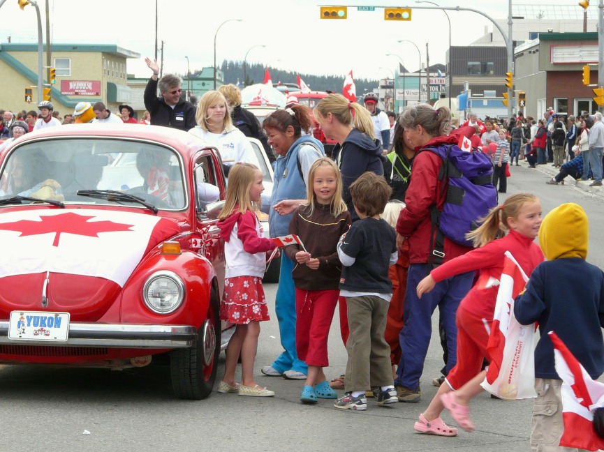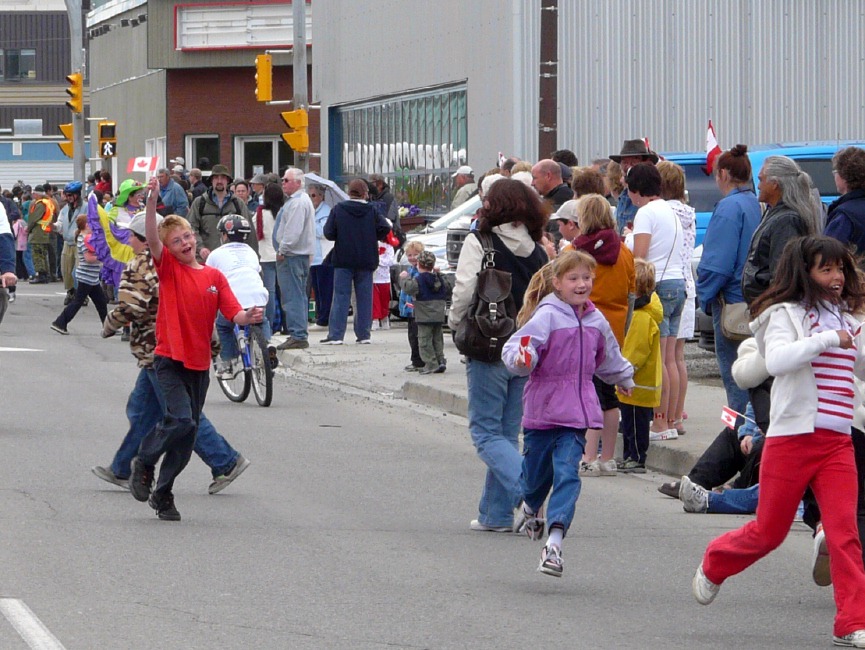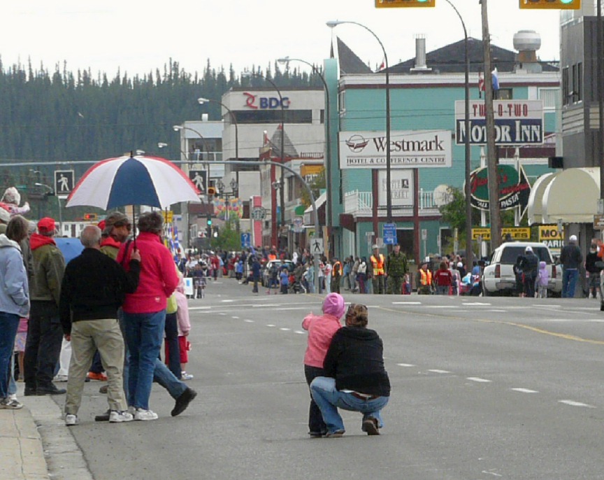 The Canada Day Parade in Whitehorse, Yukon: Anticipation in the street-- I can see them! | ||