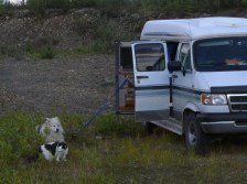 | August 6-9th Denali Highway is a 130+ mile gravel road through interior Alaska. It's closed much of the year because of the severe weather there. I drove a big rectangle-- Glenn Highway from Anchorage to Glennallen, north to Paxson on the Richardson, then west to Cantwell on the Denali, and finally south to Anchorage on the Parks Hwy. The gravel road (Denali Hwy) was pretty good; we just went slowly and enjoyed the scenery. Jascha and I went for a nice long walk on the Maclaren Summit Trail. As we headed south from Cantwell, we took a sidetrip to Talkeetna. Although I had hoped to see Mount McKinley while driving west on the Denali Hwy, she was hiding in clouds the entire time. Talkeetna has many flightseeing tours that get above the clouds, when possible, for better views of the Mountain, so that's why I visited there. By small plane, I got to see many scenes that you can't see any other way. Click the thumbnails for scenes from my 670 mile Denali trip around the middle of Alaska. | ||