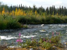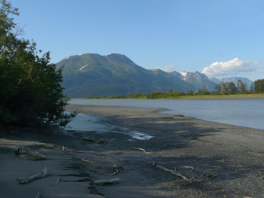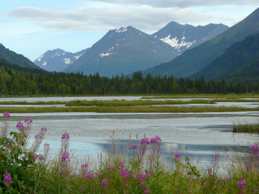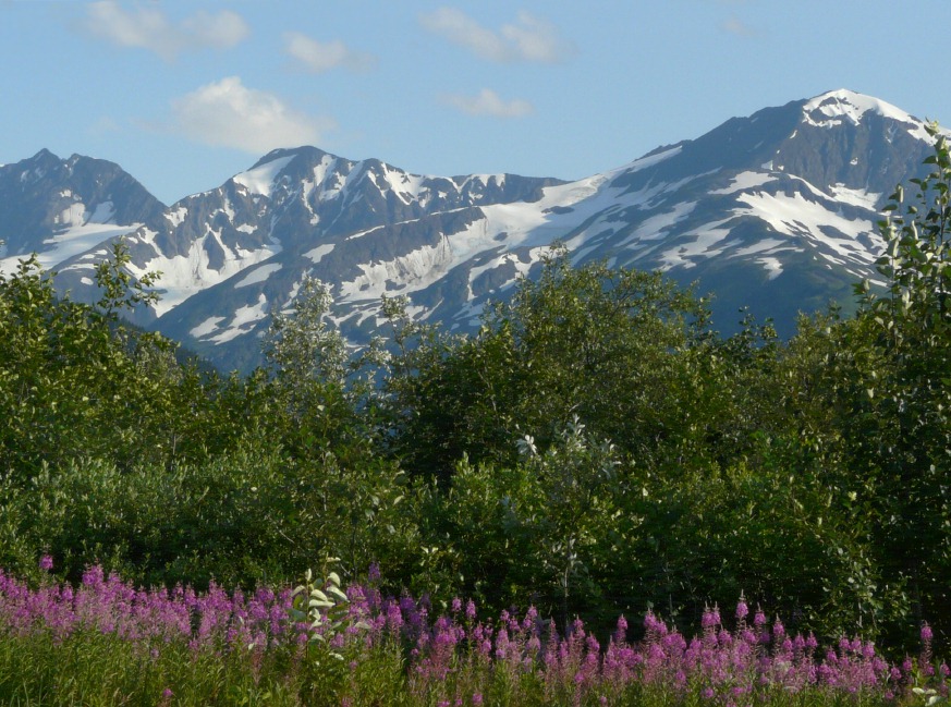 More images from the Kenai trip: Turnagain Arm scene, with fireweed and mountain, on the