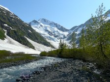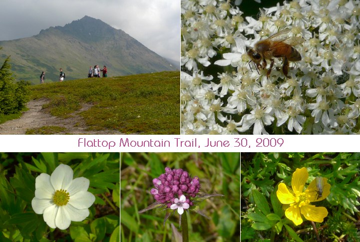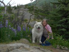 | 6/30/09 The last few days of June have been better, so this seemed like a nice day to try for the Flattop summit. Unfortunately, it's definitely too much for Jascha. We went to the second saddle, but he needed a lot of help to get that far. The section of the trail above the second saddle can be dangerous and difficult, so we went back down. This summer isn't going to be about reaching summits, but Jascha still enjoys taking nice long, slow walks. Click to see larger pictures. |