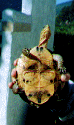 | This turtle (above) belongs to Yasunori Tanaka, an agriculture student at Kobe University in Japan. It is a young female named Yuu. Yasunori has a website about this turtle in Japanese and English. | |