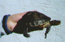 This subadult male was in a shipment that ended up at a local aquarium store. The owner does his best to provide for the animals in this shop, but was unaware that there was a species of aquatic box turtles. All of the Malayans were suffering from dehydration, this one seriously. (See more on the "wild caught" trade.) Upon being advised of the proper care, the store owner immediately had an aquarium set up. This one came home with me for rehabilitation. He has shown rapid improvement. I have a caresheet designed for pet stores and their custormers. If you see Malayan boxies in a dry terrarium in any pet store, email me, ask for my Pet Store Care Sheet. I'll also be happy to send them directly to pet stores, so just ask. | |||