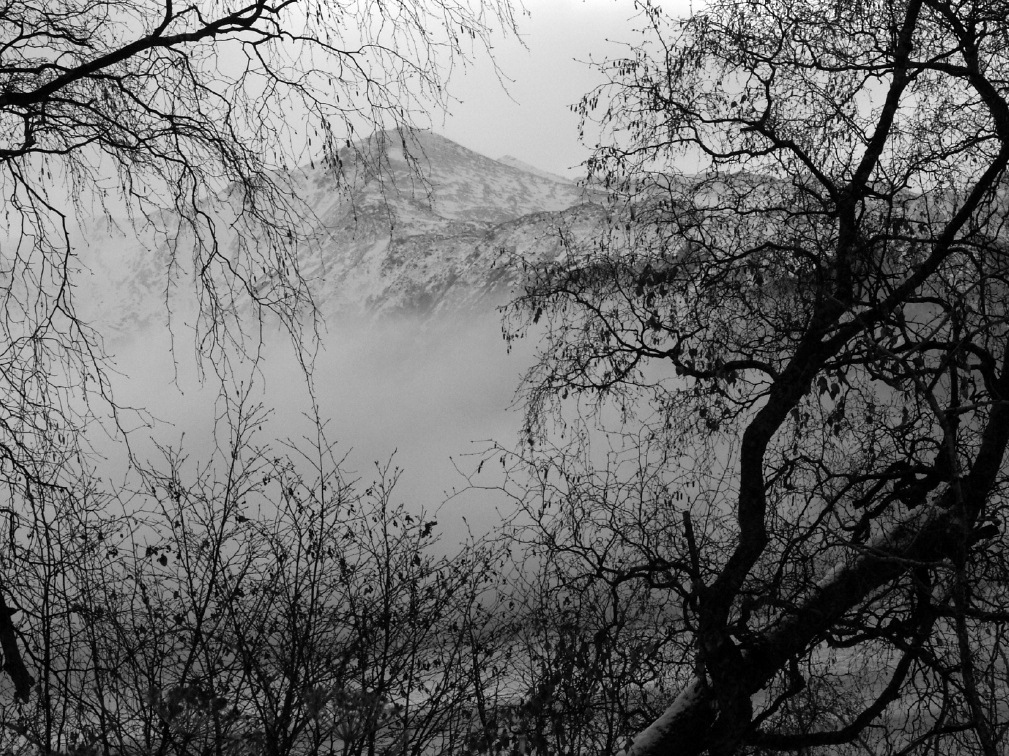 Nov: Frost on Northern Yarrow seedpods Kenai Range, rising above cloudy inlet Ice and snow on McHuge Creek